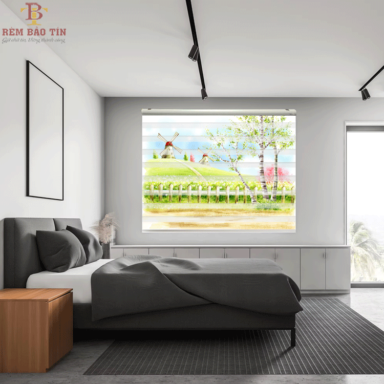 Rèm cầu vồng in tranh phòng ngủ