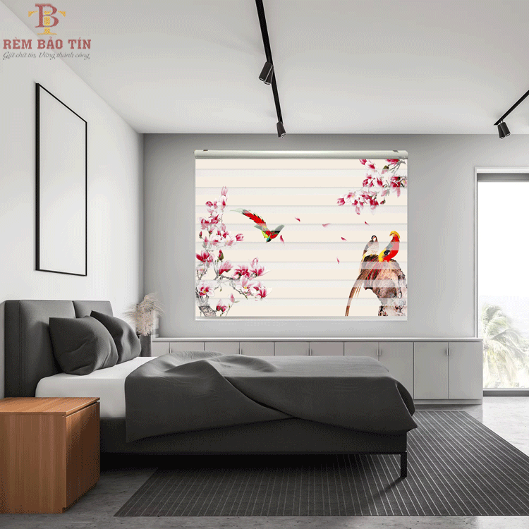 Rèm cầu vồng in tranh phòng ngủ