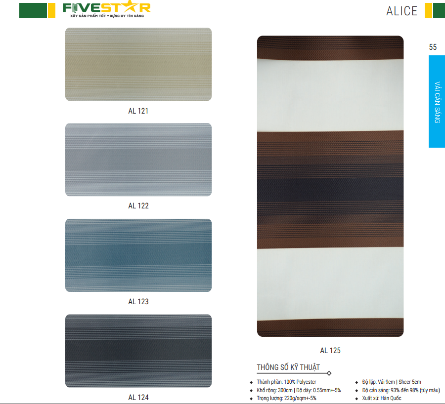 CHẤT LIỆU VẢI RÈM CẦU VỒNG HÃNG FIVESTAR – MÃ ALICE