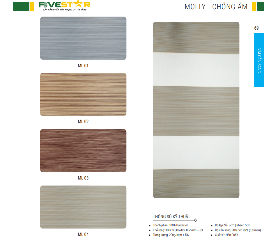 Bảng màu chất liệu vải rèm cầu vồng FIVESTAR mã MOLLY