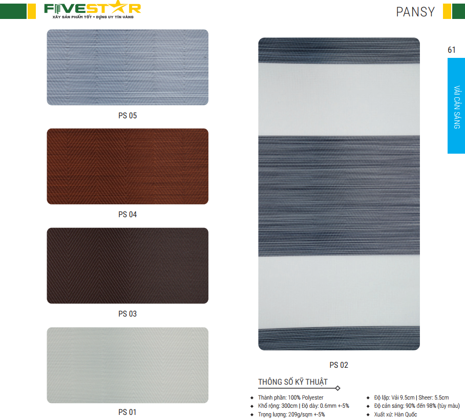 CHẤT LIỆU VẢI RÈM CẦU VỒNG HÃNG FIVESTAR – MÃ PANSY