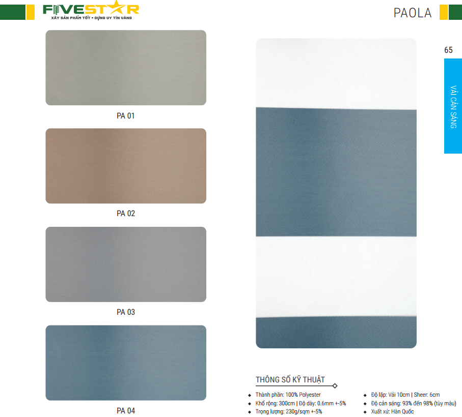 CHẤT LIỆU VẢI RÈM CẦU VỒNG HÃNG FIVESTAR – MÃ PAOLA