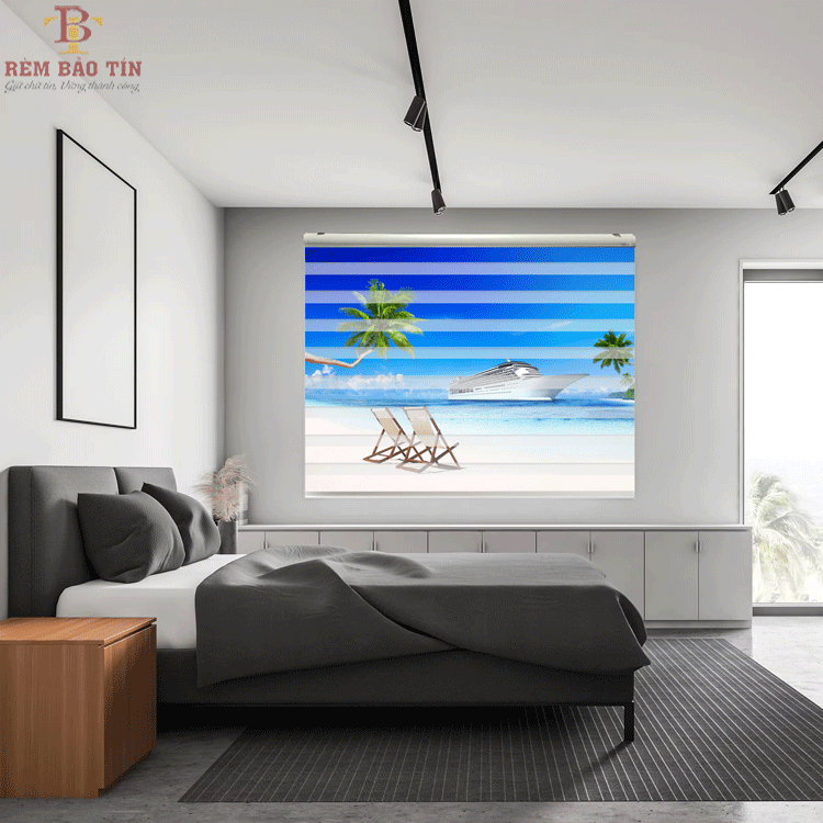Rèm cầu vồng in tranh phòng ngủ